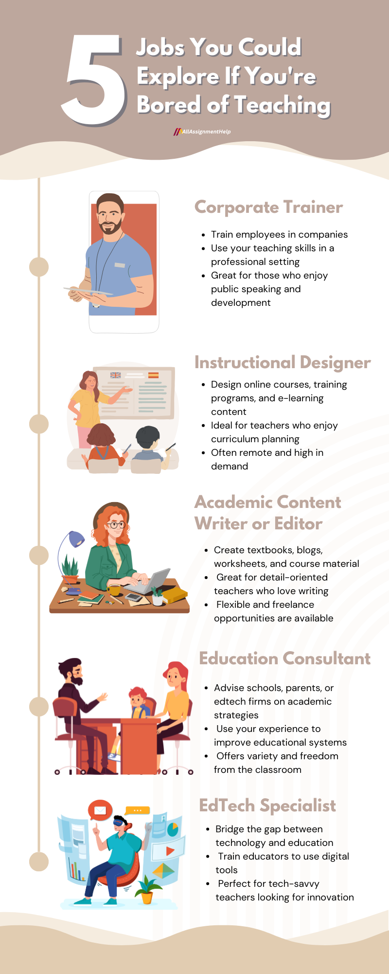 So, through this blog by All Assignment Help, let us jump into five alternative careers for teachers that might spark your love and maximise your teaching talents outside of the classroom.
