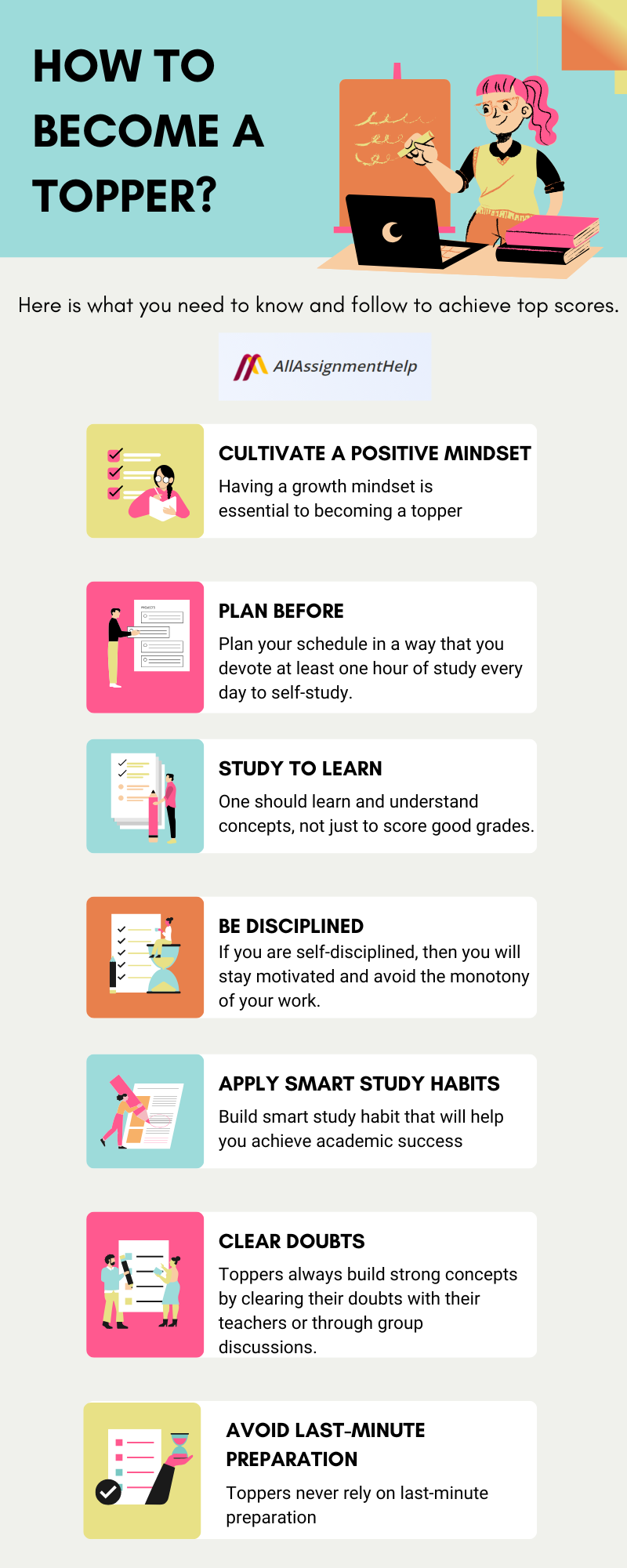 Every student aspires to be in the top position of their class. However, not all of them are aware of how to become a topper. Toppers are the ones who excel academically and score top grades in their assignments and exams. Moreover, they are not just the ones with good subjective knowledge and intelligence, with a unique mindset approach to learning. They have the one with effective time management, good note-taking, and critical thinking skills.
